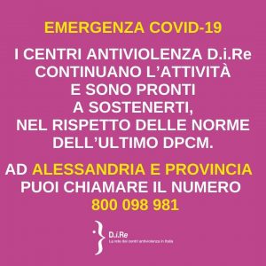 “In un momento tragico come questo non possiamo lasciare sole le donne”. A dirlo è Sarah Sclauzero, presidente di me.dea ed è per questo che i Centri Antiviolenza di Alessandria e Casale Monferrato e le Case Rifugio gestite dalla onlus, continuano a funzionare regolarmente e ad offrire il proprio supporto alle donne.