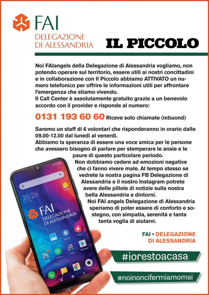 “Noi FAI angels speriamo di poter essere di conforto e sostegno, con simpatia, serenità e tanta ma tanta voglia di aiutarvi.”