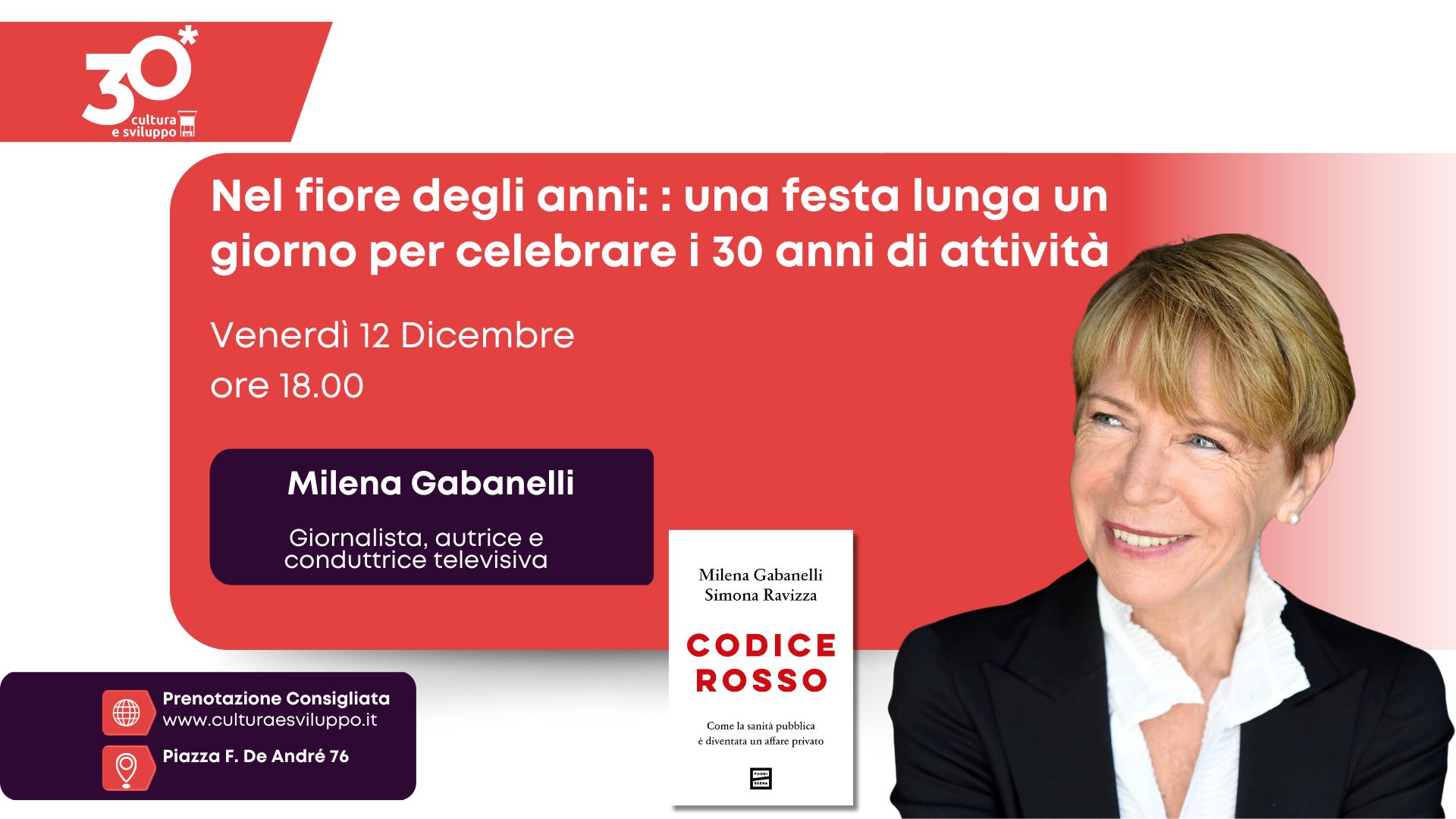 Ospite d’onore la giornalista Milena Gabanelli che alle 18 presenterà il suo libro Codice rosso. Come la sanità pubblica è diventata un affare privato (Fuoriscena, 2024). Per partecipare a questa presentazione è necessaria la prenotazione tramite il form in fondo alla pagina.