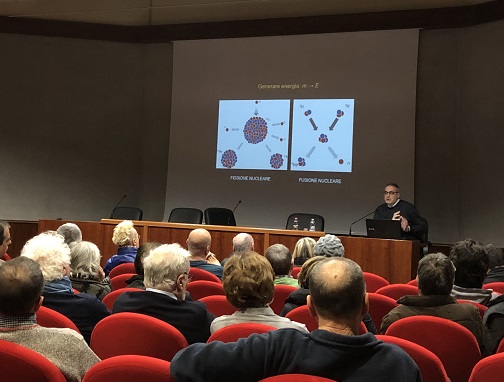 E = mc2, tra le formule che accompagnano la rivoluzione della fisica dell’inizio del Novecento, quella che lega la massa all’energia, è anche una delle più iconiche della storia del pensiero. Con semplicità ed eleganza coniugate a una potenza esplicativa, è capace di sovvertire la conoscenza e di aprire innumerevoli orizzonti alla ricerca scientifica.Vincenzo Barone, professore associato di Fisica teorica all’Università del Piemonte Orientale e collaboratore de Il Sole 24 Ore, ha parlato della formula di Einstein nel Caffè Scienza di lunedì 13 gennaio. Il professore è autore del libro E = mc2. La formula più famosa, edito da Il Mulino nella collana ‘Formule per leggere il mondo’. La formula è stata ricavata nel 1905 ma nel 1946 ha avuto un’altra nascita: impressa sul disegno minaccioso di un fungo atomico sulla copertina della rivista Time, si è tramutata addirittura in una minaccia di distruzione planetaria.