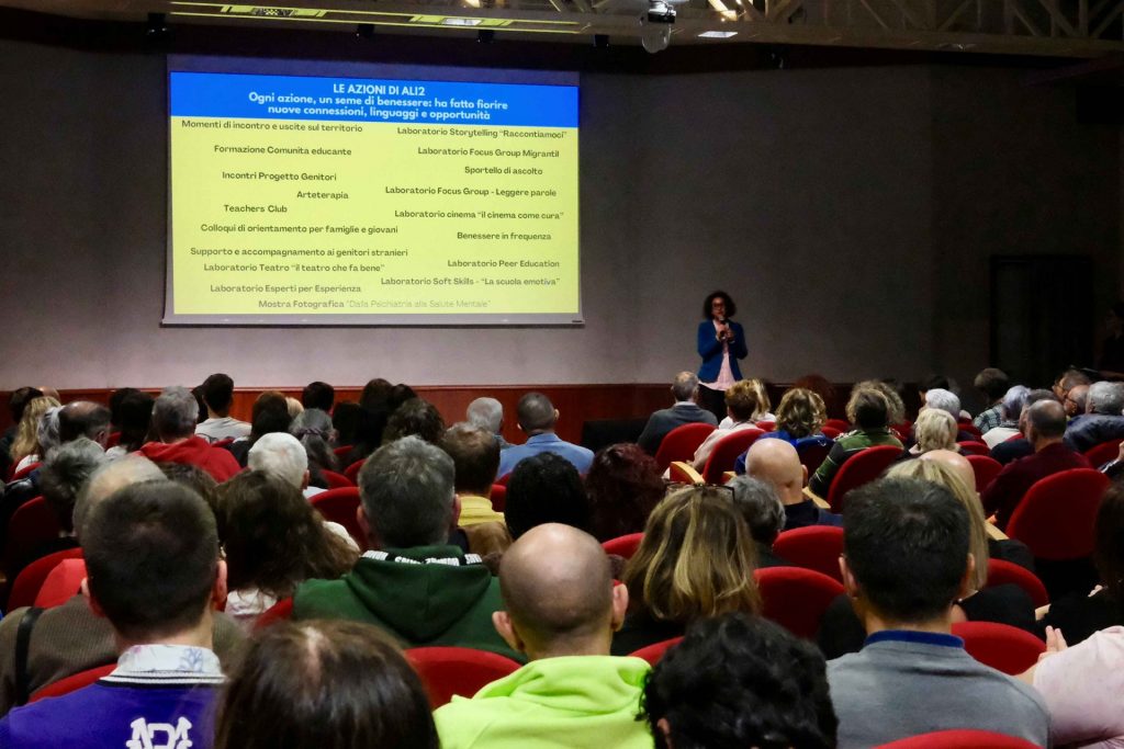 In occasione della Giornata Mondiale della Salute Mentale 2025, il Dipartimento di Salute Mentale e Dipendenze Patologiche Integrati di ASL AL e il Servizio Sociale Professionale Aziendale, attraverso il progetto ALI 2 – Contamin-Azioni per il benessere dei giovani e della comunità (finanziato dalla Fondazione Compagnia di San Paolo – bando “Salute Effetto Comune”), ha organizzato due eventi di sensibilizzazione rivolti rispettivamente alle scuole superiori e alla cittadinanza. Le iniziative, tenutesi il 10 ottobre presso l’Associazione Cultura e Sviluppo di Alessandria, hanno rappresentato il momento conclusivo di un percorso biennale intenso e partecipato, con l’obiettivo di promuovere una cultura della salute mentale come bene comune, diritto fondamentale e responsabilità collettiva. Entrambi gli eventi hanno registrato un eccezionale successo di partecipazione, con la sala gremita e oltre 196 posti a sedere esauriti; durante la serata molte persone hanno seguito l’incontro in piedi. Un risultato che testimonia il crescente interesse della comunità e del territorio per il tema della salute mentale e la rilevanza delle azioni promosse da ALI 2.