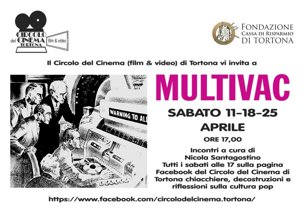 Sabato 11 aprile alle 17, sulla pagina Facebook Circolo del Cinema di Tortona appuntamento con MULTIVAC: chiacchiere, decostruzioni e riflessioni sulla cultura pop a cura di Nicola Santagostino.