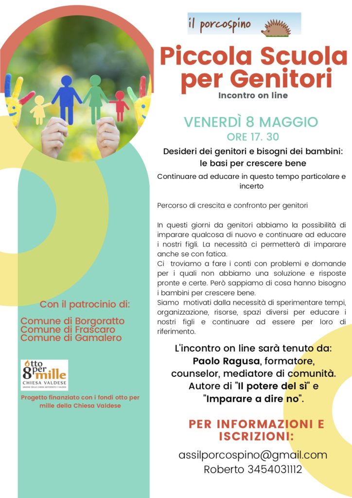 Venerdì 8 maggio, alle 17.30, Paolo Ragusa, formatore e counselor, apprezzato relatore del Progetto Genitori, sarà ospite di un incontro on line organizzato dall’Associazione Il Porcospino, per la Piccola Scuola per Genitori.