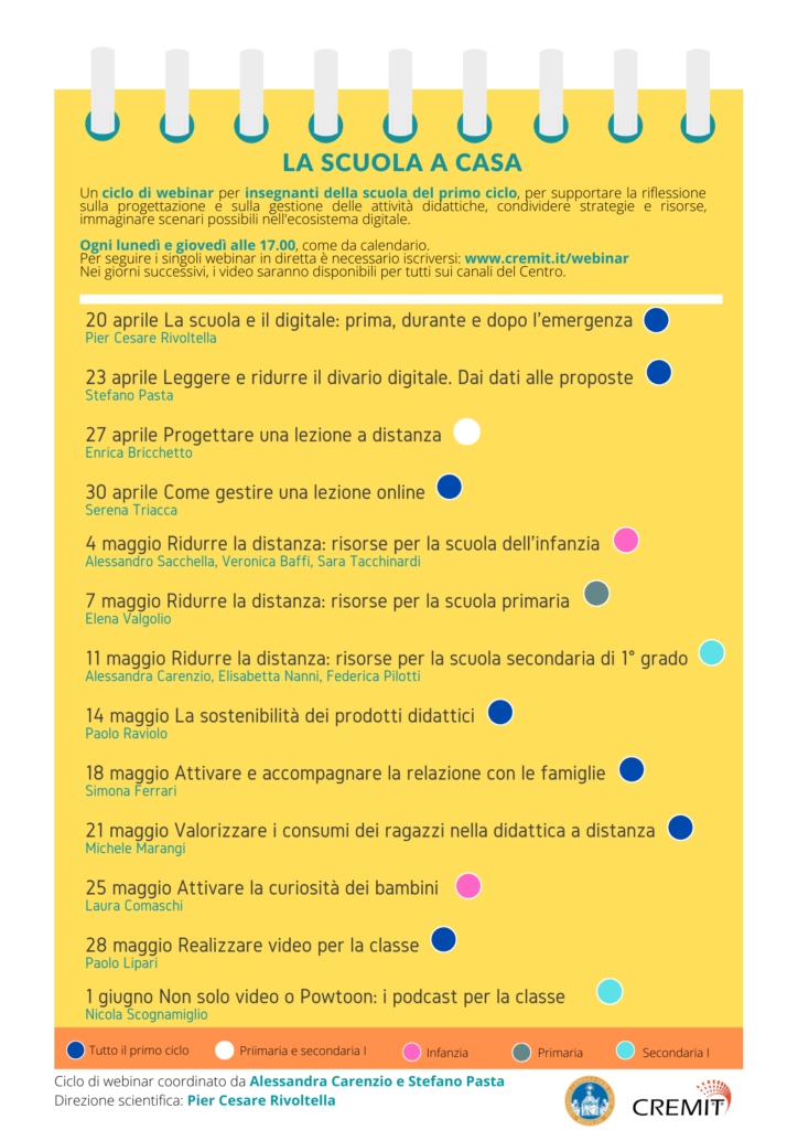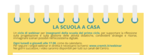 Il CREMIT – Centro di Ricerca sull’Educazione ai Media all’Innovazione e alla Tecnologia – organizza un ciclo di webinar gratuiti dal titolo “La scuola a casa”.