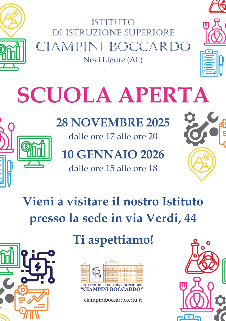 L’Istituto di Istruzione Secondaria Superiore “Ciampini-Boccardo” nasce a Novi Ligure il 1 settembre 2010 dall’aggregazione di due realtà scolastiche fortemente radicate nel territorio: l’I.T.I.S. “Ciampini” e l’I.P.C. “Boccardo”. L’I.I.S. è costantemente frequentato, dal momento dell’accorpamento, da più di mille tra studentesse e studenti, distribuiti nelle due sedi di via Verdi 44 e viale Saffi 47.