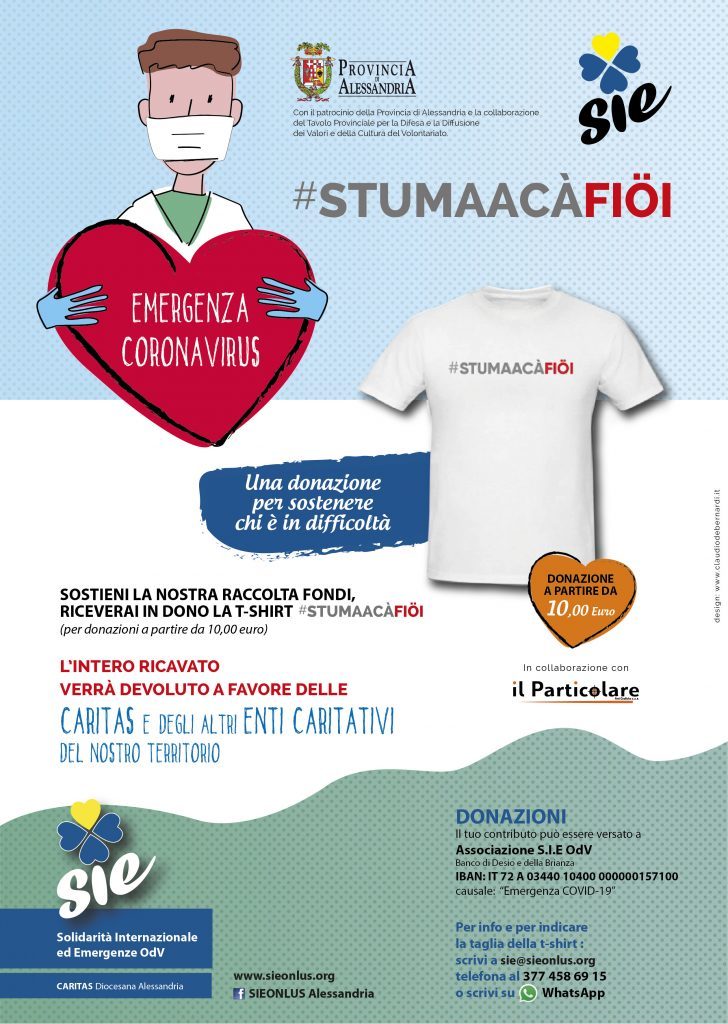 L’organizzazione di volontariato Sie (Solidarietà Internazionale ed Emergenze) ha deciso di avviare una raccolta fondi a beneficio delle Caritas diocesane della Provincia di Alessandria e di alcuni altri enti caritativi del nostro territorio.