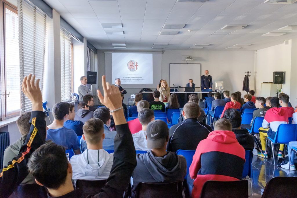 Sul palco si sono succeduti il responsabile del Progetto 3P della società sportiva, Federico Vaio, la psicologa e psicoterapeuta Sara Bosatra e l’Ispettore della Polizia Postale del nostro capoluogo, Alessandro Bocchio, impegnati ad affrontare con i ragazzi le tematiche inerenti l’utilizzo consapevole di internet e dei social networks in particolare.