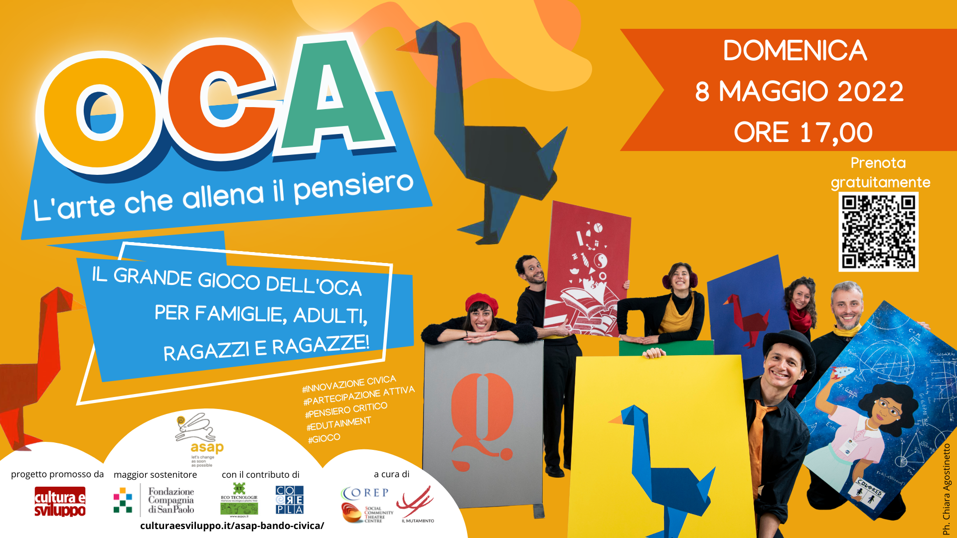 OCA: l’arte che allena il pensiero è un progetto realizzato da Social Community Theatre Centre | Corep, Polo del ‘900 e Comitato Organizzatore S-Nodi, con il sostegno della Fondazione Compagnia di San Paolo nell’ambito del “Bando CivICa”, progetti di Cultura e Innovazione Civica